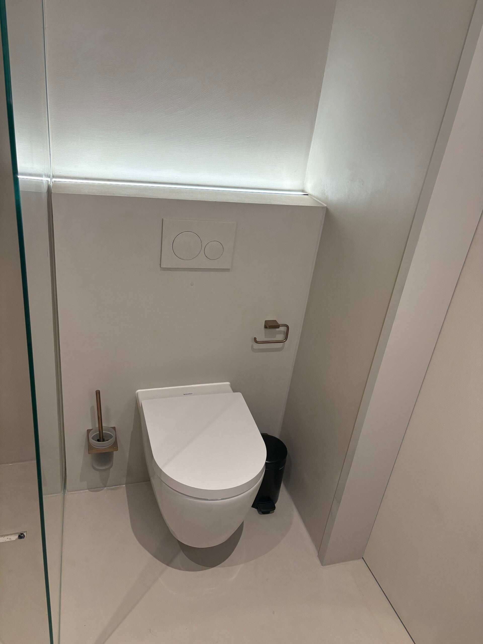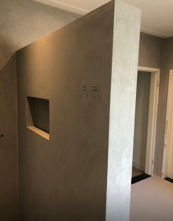 alt="Art Beton wandafwerking in moderne badkamer op Curaçao"